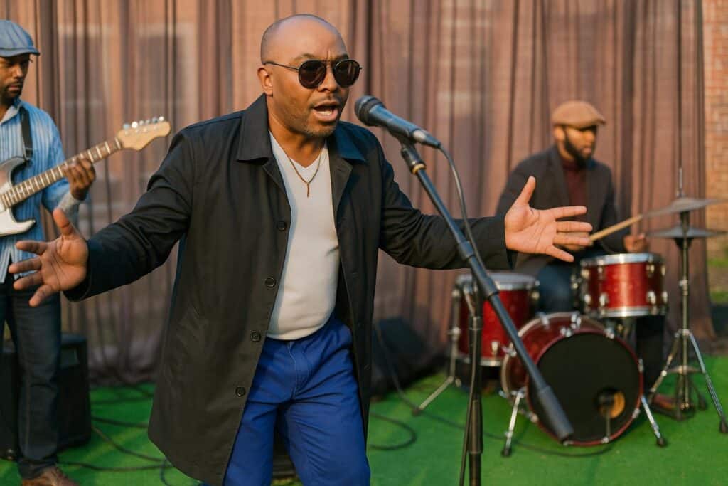 Ce compagnonnage explique son aisance à passer du chant lead à la guitare rythmique, atout qui le situe parmi les artistes congolais dits « multi-casquettes ». Dans l’industrie locale, peu cumulent ainsi performance vocale et direction musicale.